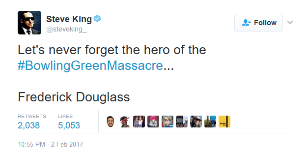 Also, there was a horrible incident called the Bowling Green Massacre that I can only assume we've never heard of because the liberal media chose not to cover it!