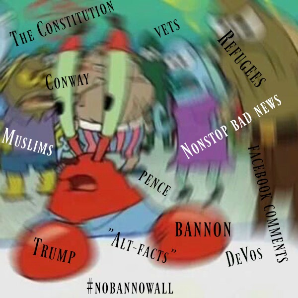In the midst of all this I've also felt motivated to work harder, love harder, look for more opportunities to reach out to people in positive ways. I've been encouraged by the many, many people out fighting against these policies. I have to do more. Do I think posting a meme or a status update on Facebook is going to change anything? No. But am I going to stop? No. It's important to me to express these feelings.